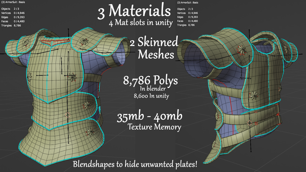 Tris: 8,786 in Blender 8,600ish in Unity