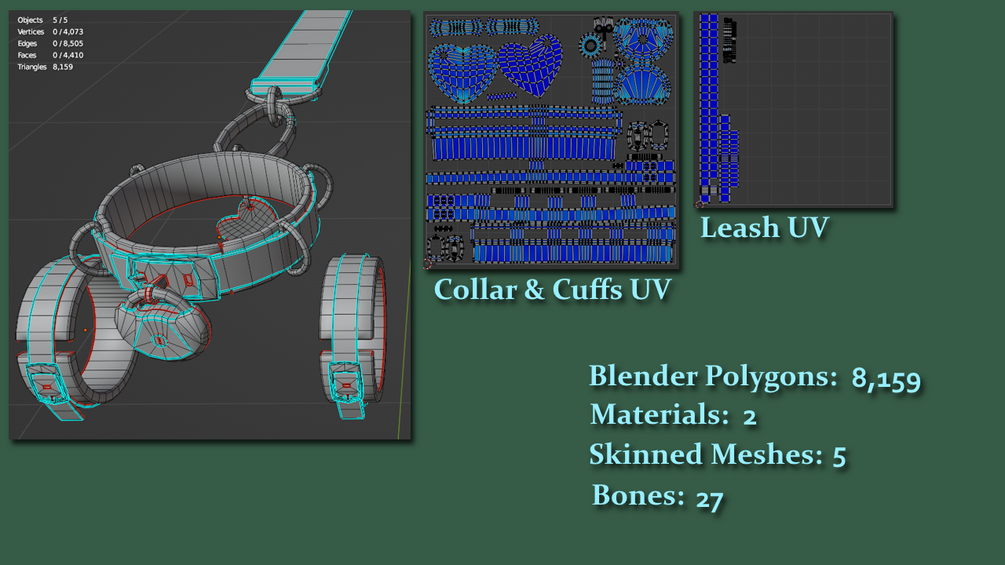 Skinned Meshes: 5 (Collar, Cuff Right, Cuff Left, Leash, Lock)