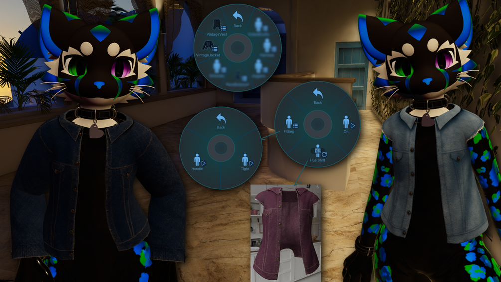 In game menu has Hue Shift radial, and blendshape toggles for use with my Hoodie!